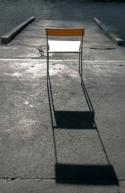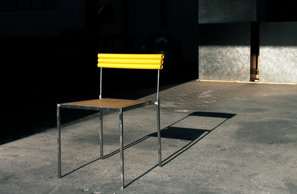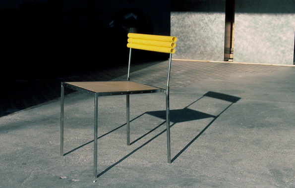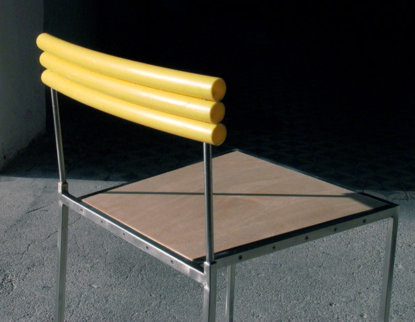 Prototyp: Leichter, stapelbarer Sessel ohne Armlehnen.