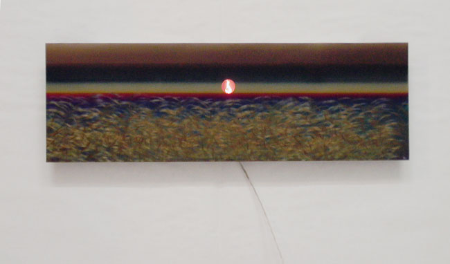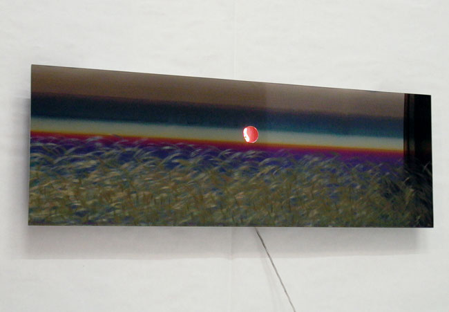 26 x 80 x 4,3 cm. Edelstahl hochpoliert, teilweise strukturiert, säuregefärbt, Flackerlicht