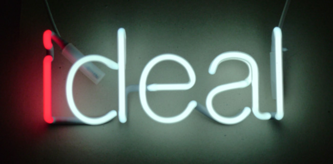 Wort:ideal, gebrochen in i (rotes Neon) und deal (weißes Neon). Spielt mit der Vorsilbe "i". Präfix bei Apple seit 1996 ursprünglich für "internet", heute für eine unübersehbare Menge an Worten im Zusammenhang mit digitalen Tools und Dienstleistungen.