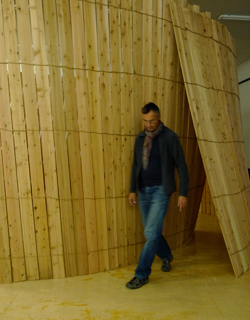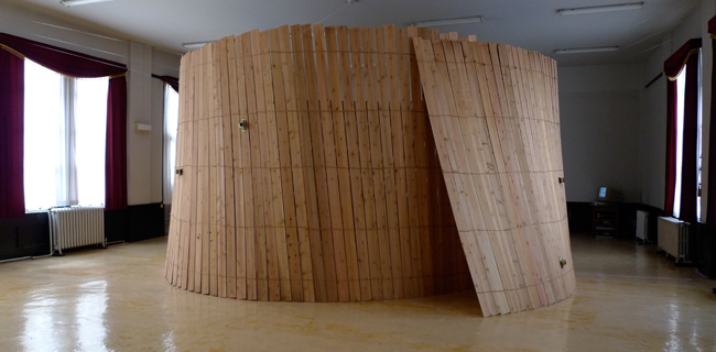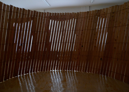 What I can do as an artist in the face of the universe is to build up a simple construction like a shaky hut. A spiral as a fence with live outside. Hearable live. The form of the construction has no symbolic meanings, it is a physical room to get in resonance of imagination, while the sounds float around the visitor like an circular accelerator. The composition refers a physical, as well as maybe a spiritual expression of the perpetual spiral of time, of birth and death.