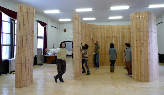 Mixing these universal and earthly sounds with recordings of natural and human vioces that he collected in India and New Zealand, Tomas arranged them into a huge sound installation housed in a spiral chamber amplifying the universe in harmony with humanity. (catalogue: 3rd Kokaido Art Show+, p 45)