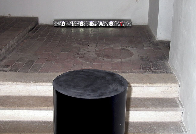 Neben der Ausstellung in den Galerieräumen realisiert der Künstler eine neue Textintervention zur Thematik im Bereich des Schlosses.